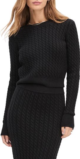Cozy cable stitching brings warmth and texture to this close-fitting sweater knit in a cropped silhouette.