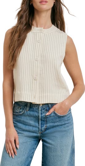 The Fine Line Pinstripe Button-Up Top