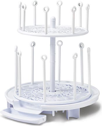 Losing counterspace to baby bottles, pacifiers and all that other baby gear? The First Years Spin Stack Drying Rack makes kitchen organization simple. This drying rack features a space-saving vertical design that uses limited counter space while accommodating up to 16 baby bottles or a combination of those other baby essentials that seem to be taking over your home. Using the two adjustable spinning levels, it’s easy to access the items you need. If you’re looking for an over the sink dish drying rack, the Spin Stack easily drains directly into the sink or can be used with the included tray that will catch drips when drying elsewhere on your countertop. This dish drying rack also stores flat and can easily tucked into a kitchen cabinet when not in use. After baby’s outgrown bottles, this spinning rack lives on as an easy way to dry all the sippy cups your toddler will be using. With the Spin Stack Drying Rack, you can count on seeing your counters again!
