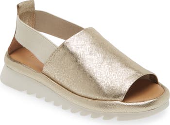A flexible grip sole and well-cushioned footbed ensure all-day comfort in a soft leather sandal eased by breezy side cutouts with elastic straps.