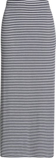 This close-fitting but comfy knit pencil skirt cast in sporty horizontal stripes will become a foundational piece in your warm-weather wardrobe.