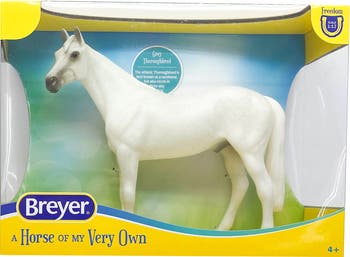 The Freedom Series - Fleabitten Grey Thoroughbred. The athletic Thoroughbred is best known as a racehorse, but also excels in three-day eventing.The Freedom Series are Breyer's most realistic models for young collectors. Designed in 1:12 scale of the same quality materials as Breyer Traditional Series models, they feature authentic hand-painted details for the realistic look that kids want. With contemporary accessories, barns, and riders, young horse lovers will enjoy the true-to-life experience during active role play! Age 4+. About Breyer: THE BREYER PROMISE - With Breyer, you are getting a real horse of your very own. Every Breyer horse is created by hand, under the watchful eye of the world's leading equine experts. Our commitment to high quality material and hand crafting mean that just like in nature, no two Breyer models are exactly alike. Because nothing is as magical as having a horse of your very own.