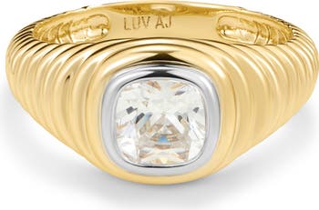 Let your ring stack stand out with this statement-making signet ring that brilliantly shines with a center cubic zirconia setting.