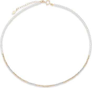The "Glimmer Choker" with 14k Faceted Gold Beads & Pearl Necklace