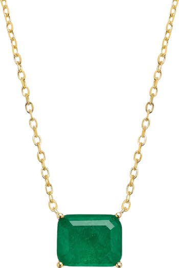A verdant cubic zirconia in an emerald cut brings rich color to this necklace plated in 18-karat gold.