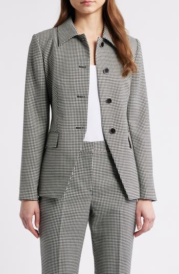 Build out your black-and-white collection with a polished checked jacket cut from a seasonless wool blend.