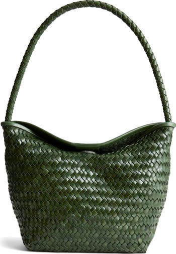 Handwoven from luxe leather, this shoulder bag features a magnetic closure and is perfectly sized to hold essentials like your phone, card case, keys and lip gloss.