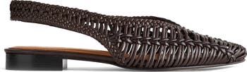 Designed with a pointed toe and a comfy low heel, this sleek slingback flat is made from woven leather to add texture and dimension to any look.