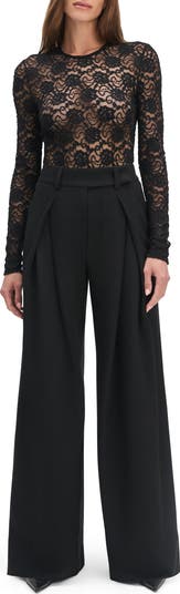 Intricate lace romances this sultry semisheer bodysuit that perfectly sculpts your figure.