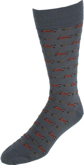 Channel classic countryside charm with The Hunt Is On dress sock. Featuring a clever fox in mid-pursuit, this mid-calf sock captures the thrill of the chase with a touch of wit and sophistication. Crafted from luxuriously soft Pima cotton for a smooth, breathable fit, it is finished with reinforced heel and toe construction for long-lasting wear. A perfect blend of tradition and playful style, ideal for the gentleman with a sharp eye for detail. Fits shoe sizes 8-12.