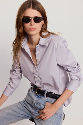 The Icon Shirt runs tailored at the waist, chest and back. For a contemporary fit, order true size. For a blousier fit, size up, or consider The Boyfriend Shirt for an even looser look.Our perfect fit cotton stretch button down. We designed our best-selling Icon Shirt to be fitted throughout, giving you a body-hugging shape yet eliminating blouse gape completely. Our cotton stretch is sourced from a family-run mill in Spain and produced in our factory in Portugal by a local team of artisans.Rochelle Behrens reimagined how shirts should fit and feel. Our patented No Gape® button technology, seamlessly designed into every shirt and shirtdress we design, eliminates blouse gape. Finally say bye bye blouse gape, hello The Shirt.