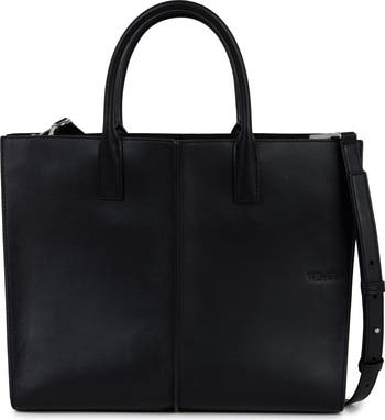 This tructured tote boasts a clean and crisp silhouette with a shoulder strap and handles for versatile carrying options.