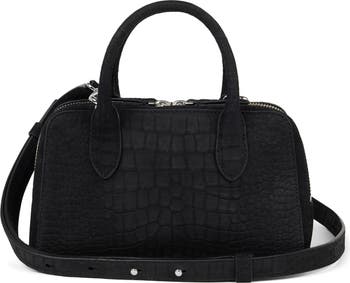 Clean lines and a structured silhouette distinguish a scaled-down leather satchel featuring divided compartments and an optional crossbody strap for on-the-go convenience.