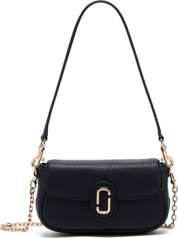 An iconic double-J logo highlights the richly pebbled exterior of a structured shoulder bag that you can carry on a gleaming chain or sling over your shoulder with the sleek leather strap.