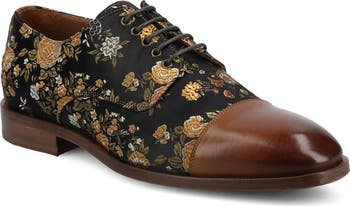 The Jack oxford dress shoe by TAFT is a refined choice, combining genuine leather and fabric uppers for a striking contrast. Its classic lace-up design and sophisticated cap-toe silhouette exude timeless elegance, perfect for formal events or any professional settings. Finished with an almond-toe shape, this bold shoe enhances any tailored ensemble.