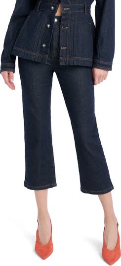 Stay comfy on sunny days in these stretchy denim capris made with an eased mid-rise waist, slit hems and a relaxed silhouette through the hips and thighs.