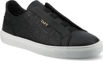 The James slip-on sneaker by TAFT is crafted in Italy from genuine leather, offering a clean and modern look. It is designed with stretch elastic on the upper for ease of wear. Its round-toe design and minimalist silhouette make it a versatile choice for casual and semi-formal settings. Featuring a cushioned insole for comfort and a durable rubber outsole, it delivers reliable support with every step.