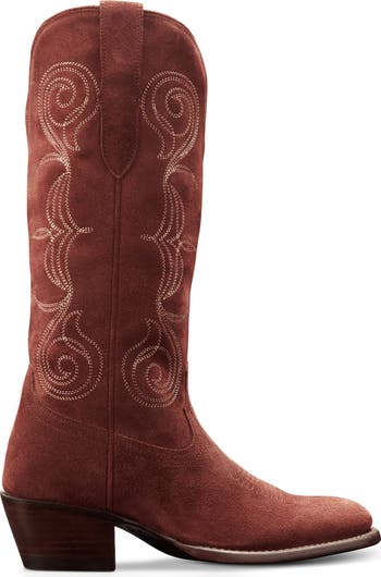 Vintage-inspired stitching and an almond toe elevate a dancefloor-ready Western boot constructed with a three-quarter Goodyear welt and durable leather sole.