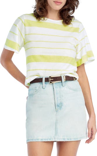 Slip into the fresh, breathable comfort of linen and cotton with this crewneck T-shirt streaked with wide and slim horizontal stripes.