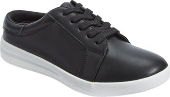 The best of what you love in your favorite sneaker, plus all the benefits of your favorite mule. This versatile pair features a leather-like upper with sweet multi-color fabric detail on the heel, plus adjustable laces for a secure fit.