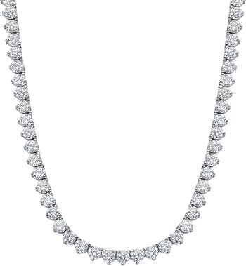 We wanted a faux tennis necklace that looked perfectly real and that would sustain the test of time, so we created it. The stones are diamond alternatives and the sterling silver is real so color won’t turn. Wear our ”Faux Tennis” pieces to fake it, or mix them with your real pieces, no one will know. Our “Kate” 3 prong 3mm tennis necklace is the perfect addition to your neck stack.