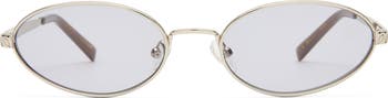 Delicate proportions and timeless allure distinguish these slender oval sunglasses marked by embossed temples for a signature finish.