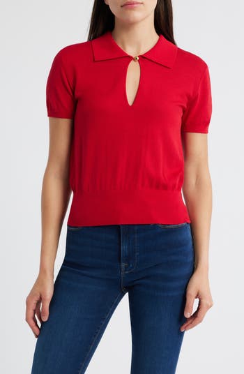 A keyhole replaces the traditional button placket in this flirty rendition of the classic polo cut from a silky cotton blend that gives this style its soft, pleasing drape.