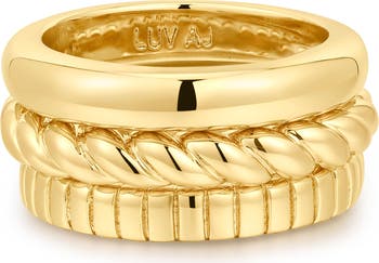Whether stacked or worn separately, this set of smooth and textured rings adds subtle glamour to any look.