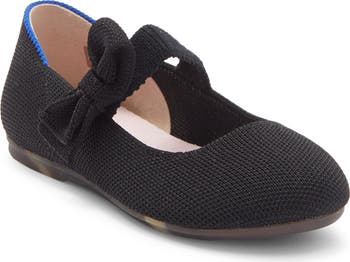 A tuxedo-inspired bow trims the strap of this kid-sized mary jane made with a soft knit sourced from recycled plastic bottles. A cushy footbed and rubber sole offer all-day comfort.