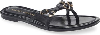 Buckled accents embolden the slim leather straps on an edgy flip-flop grounded by a cushioned footbed and flexible rubber sole.