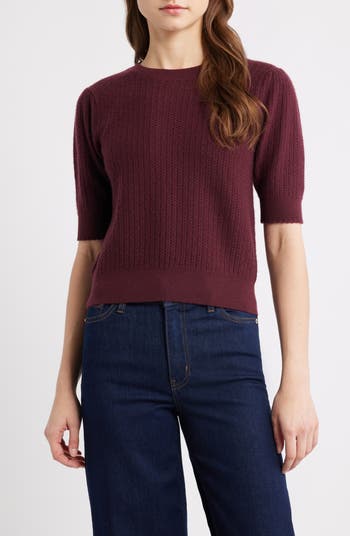 The Ladder Pointelle Short Sleeve Cashmere Sweater