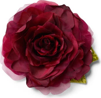Exhaling a sweet, deep scent, the red rose embodies romance and passion. Adorned by silk velvet leaves, this classic bloom is lovingly handmade of crimson red silk organza, silk shantung and silk habotai. The rose is the birth flower of the month of June and is the state flower of Washington D.C, New York, Iowa, Georgia, North Dakota and Oklahoma.