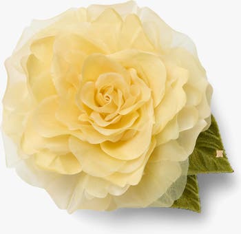 Cheerful yet elegant, the yellow rose celebrates happiness, friendship and positivity. It is also synonymous with the great state of Texas. This delicate bloom is lovingly handmade with pale yellow silk taffeta, silk satin face organza and silk organza petals, and features chartreuse green silk velvet leaves. The rose is the birth flower of the month of June and is the state flower of Washington D.C, New York, Iowa, Georgia, North Dakota and Oklahoma.