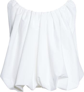 This runway-featured top from Simon Porte Jacquemus’s 'Le Paysan' collection—a deeply autobiographical tribute to his rural upbringing in the South of France—blends rustic influences with sculptural volume. The easy drape and gathering, enhanced by the structured off-the-shoulder neckline and bubble hem, elevate this peasant-inspired top to a modern luxury.