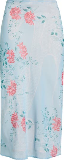The bias-cut skirt silhouette of the season comes through in soft shades and dainty blooms.