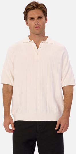 The Lisbon Polo features a relaxed drop-shoulder design for an easygoing, stylish vibe. With a three-button front and textured vertical stripes, it adds a distinctive touch to your summer wardrobe. Whether layered or worn on its own, this polo delivers effortless comfort and standout style all season long.