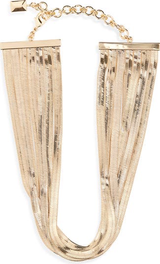 Seven snake-chain bands appear to undulate together on this scintillating necklace, creating a golden river of movement across your neckline.