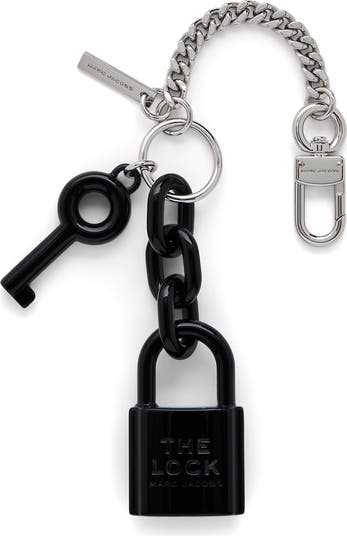 Glossy lock and key motifs bring a signature flourish to a stylish charm perfect for affixing to your keychain or favorite handbag.