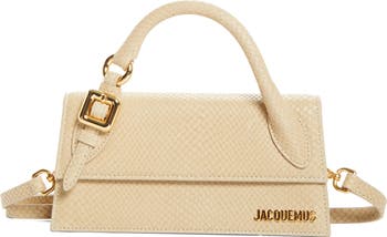This elongated version of the French designer's cult Le Chiquito bag is crafted from embossed calfskin leather and updated with a buckled-and-ring-hardware carry handle for a subtle take on the Rond Carré motif.