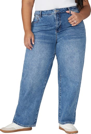 Relaxed and easy for everyday outfits, these nonstretch jeans are fitted through the high waist and loose through the full-length legs.