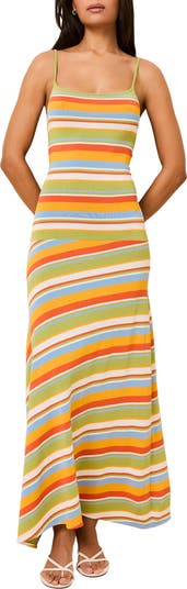 Vivid hues stripe an open-back maxi that pairs perfectly with sunset cocktails and deserves the top spot on your packing list.