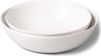 Hand-finished in Portugal's Tagus Valley from locally sourced recycled clay, these one-of-a-kind serving bowls are double-fired for everyday durability.