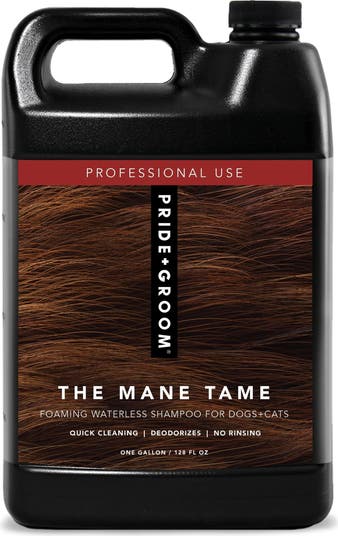 QUICK CLEANING | WATERLESS | DEODORIZING THE MANE TAME waterless pet shampoo is light, foamy and super easy to use. Best of all? No water necessary! A quick and surprisingly thorough way to extend the life of a groom or just freshen up a coat that’s been around the block just a few times too many. Know a kitty who could use a little somethin' somethin'? THE MANE TAME dry shampoo is great for cats too! Quick and effective—they'd never admit it, but they'll feel anew. Simply pump THE MANE TAME foam into your hand (for cats and small dogs, you'll want the size of an egg; for bigger dogs, a couple of eggs). Why Pet Parents Love THE MANE TAME: -Quick Clean Without Water: Perfect for busy days, travel, or pets that dislike baths. -Deodorizes Instantly: Leaves pets smelling fresh between full washes. -Gentle & Safe Formula: Works on dogs and cats, including those with sensitive skin. -Easy to Use: Simply foam, massage, and towel off—no rinsing required. -Reduces Grooming Stress: Ideal for pets who get anxious during baths, making grooming a calm experience. -Maintains Coat Health: Helps keep fur soft, manageable, and shiny even without a full bath.