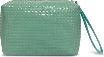 The Maren Cosmetic Bag is equal parts fresh and functional. Designed in a soft mint green with a subtle textured finish, this bag brings a clean, modern feel to everyday organization. The structured shape keeps makeup and toiletries upright, while the wristlet strap makes it easy to grab on the go—perfect for travel days, gym bags, or daily routines. Polished, practical, and easy to love.