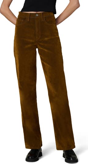Flocked denim brings luxe, velvety texture to these slightly stretchy, relaxed-fit jeans flaunting a high waist and full-length straight legs.
