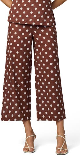 Wide-leg pants are updated in a lightweight linen blend with a kiss of cotton for added ease. Bold allover dots bring a party-perfect attitude to this versatile look.