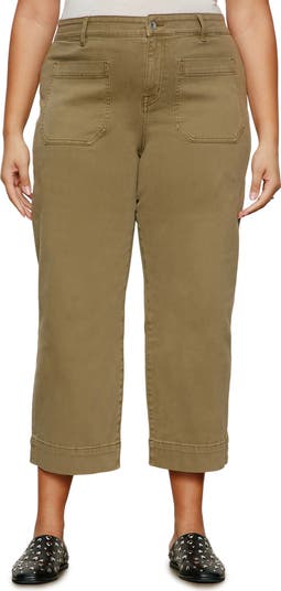 Patch pockets and a kicky crop add trend-right vibes to stretch-kissed jeans turned out in a military shade.