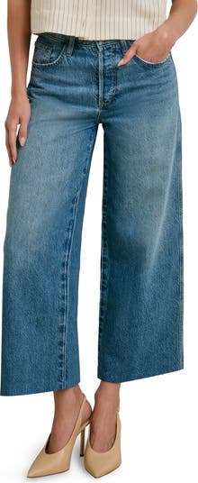 A superhigh waist balances the raw-cropped hems of these wide-leg jeans made from soft-yet-structured denim.