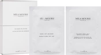 How to use: Use on cleansed and toned skin. Remove the protective layer from one side of the mask. Place the mask on the face and adjust position of openings for the eyes and mouth. Press lightly. Carefully remove the other protective film on top. Gently smooth the mask so that it is completely fitted against the skin. Remove the mask after 15-20 minutes. Massage remaining product into face, neck and décolleté. Proceed with recommended Mila Moursi product ritual.