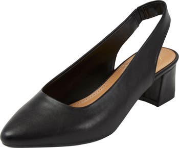 Give your everyday look a lift with this beautiful block heel style. Featuring hidden elastic gore for ultimate comfort, plus a smooth leather-like upper, this slingback silhouette is a sophisticated choice, no matter what’s on your agenda.